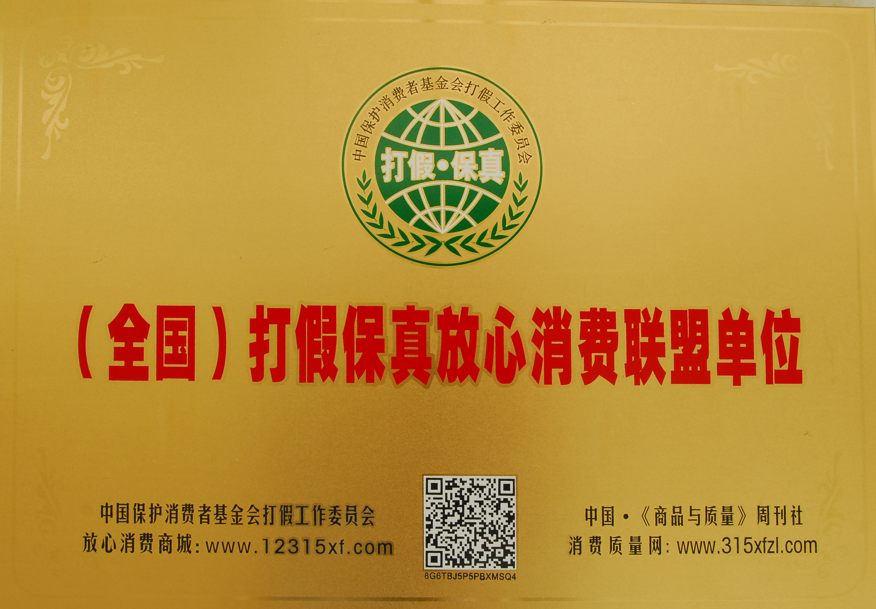 全国打假保真放心消费联盟单位奖牌