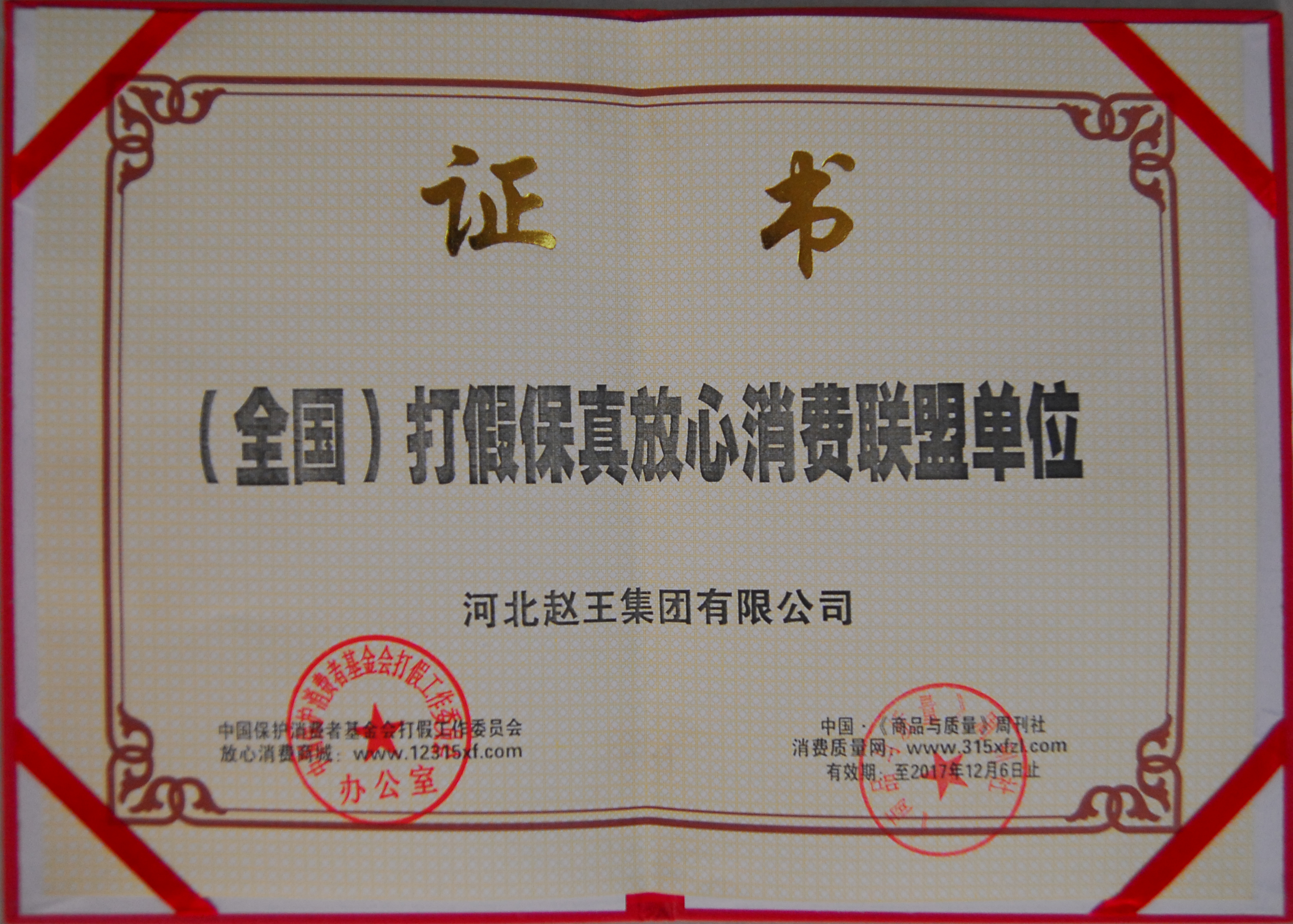 2015全国重点推荐诚信品牌(单位)证书