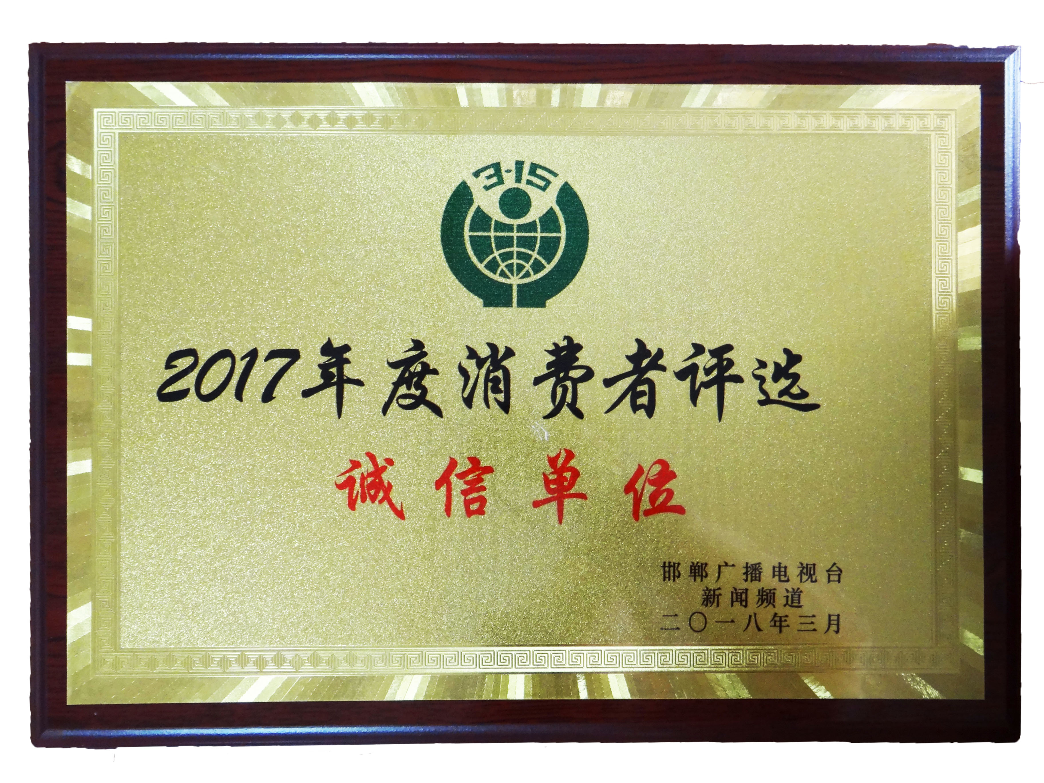 2017邯郸市消费者评选诚信单位