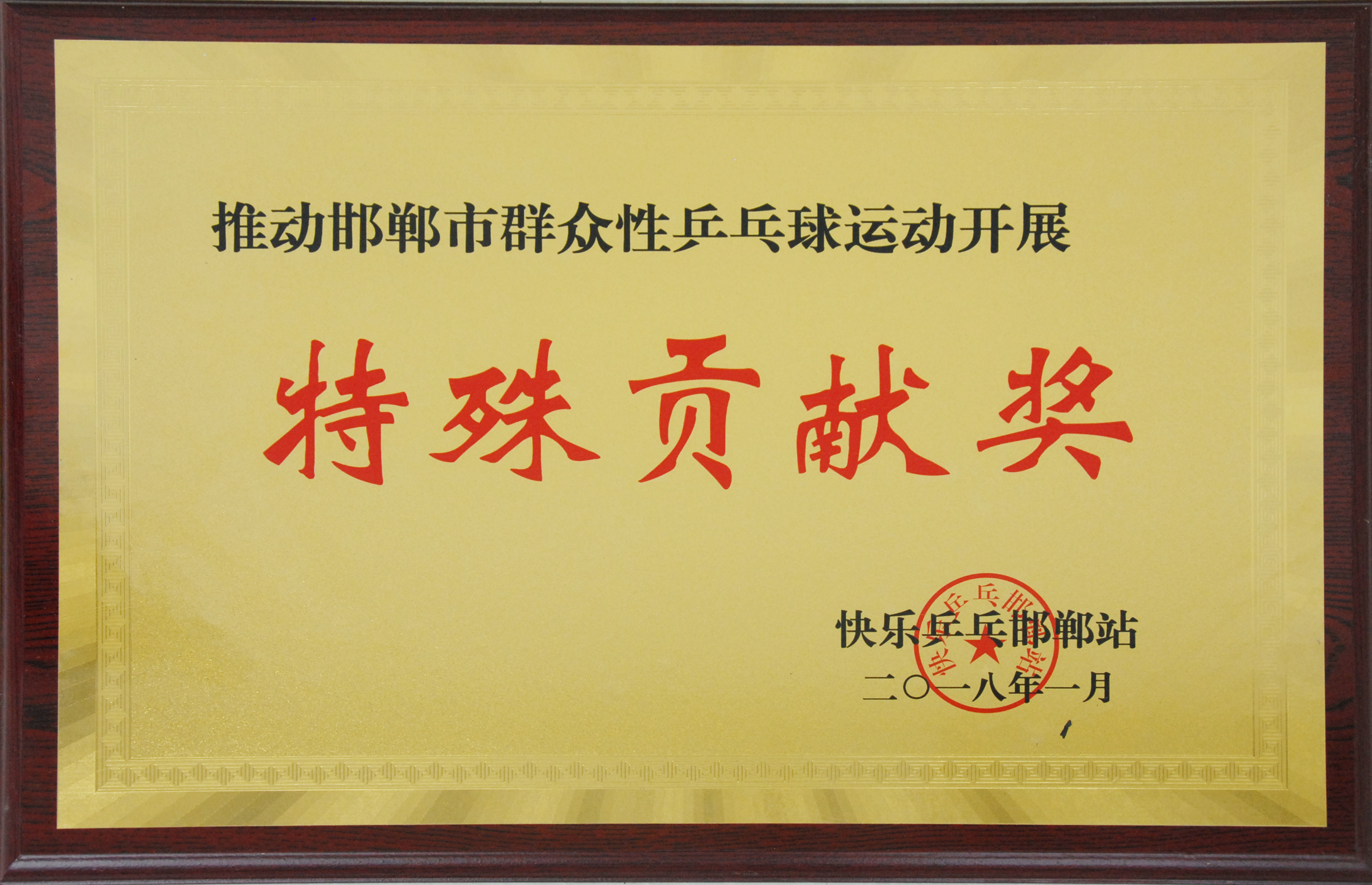 推动邯郸市群众性乒乓球运动特殊贡献奖
