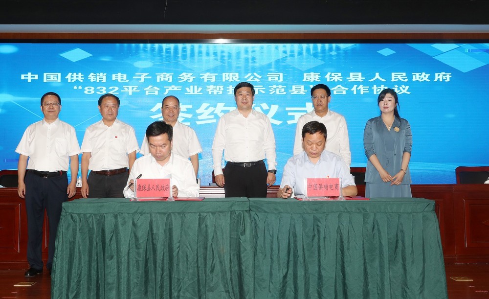 成立现场,全国供销总社中国供销电子商务有限公司与康保县人民政府就“产业帮扶示范县”合作协议进行了签约。